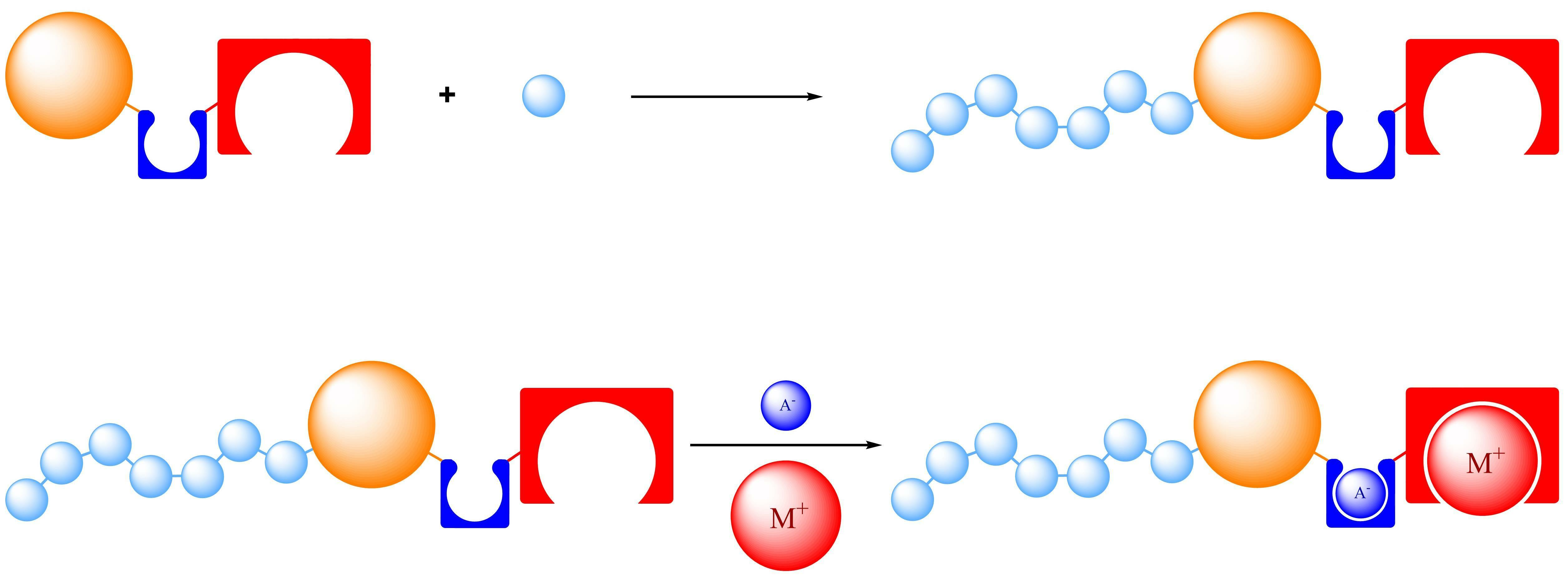To address the challenge of developing the first squaramide-based ion pair receptor acting as an iniferter in the polymerization process, a well-known BDPA molecule with specific radical functions was incorporated into its structure. The developed ditopic receptor demonstrated the ability to cooperatively bind ion pairs. Moreover, it proved to be an effective iniferter in the polymerization reaction using methyl methacrylate. The polymerization process preserved the ion-binding properties of the receptor, enabling the formation of functional polymeric materials. It was shown that the resulting polymer with the embedded receptor can be used for salt extraction from both solid and liquid phases, whereas the reference receptor lacking the BDPA unit did not exhibit this capability. This opens new avenues for the design of intelligent and selective polymeric materials for applications in supramolecular chemistry and separation technologies.